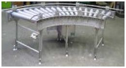 ローラーを使ったカーブコンベアです。