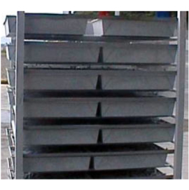 冷凍パンを生積みする方法は大きく3種類あります(桟木、ラック、取っ手付き冷凍パン)。当社ではすべての方式の生積みラインをご提案できます。