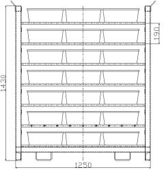 裸の冷凍ブロックを製造する行程の中で、選別後の鮮魚を冷凍パンに入れて生積みするラインです。